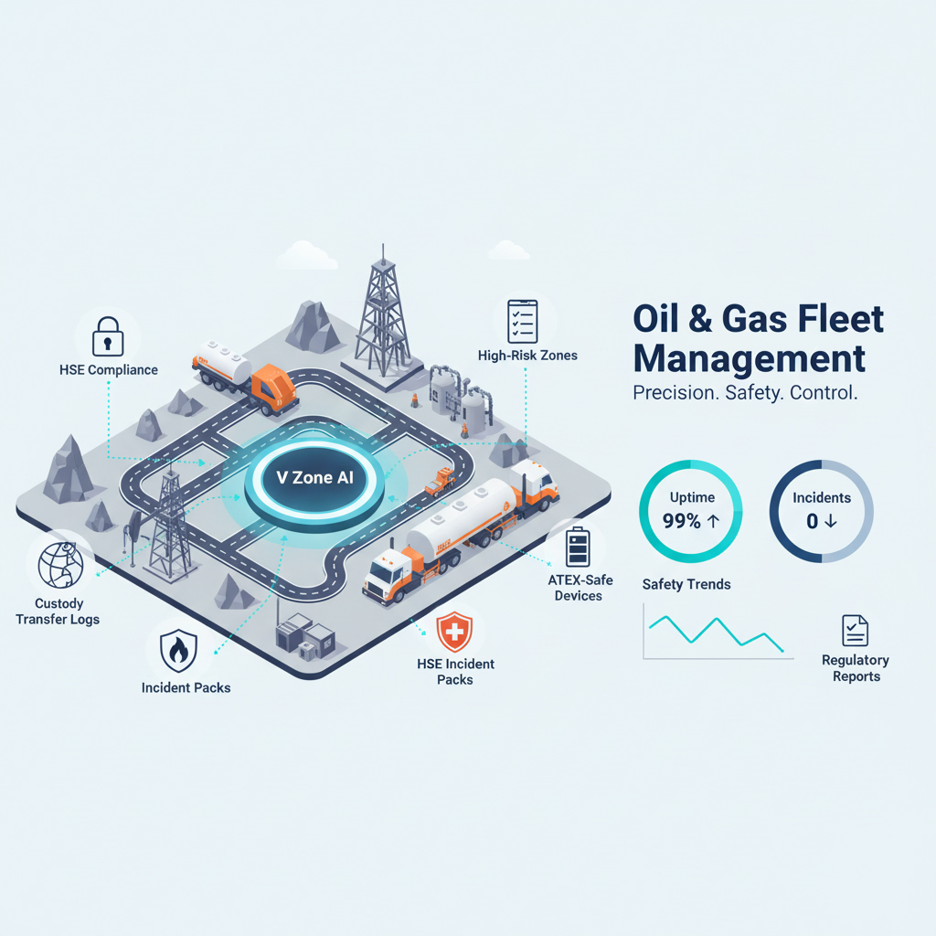 From fuel transport to remote rig access, oil & gas operations demand extreme reliability, regulatory compliance, and safety-first fleet intelligence. V Zone delivers all — powered by AI and built for rugged performance.