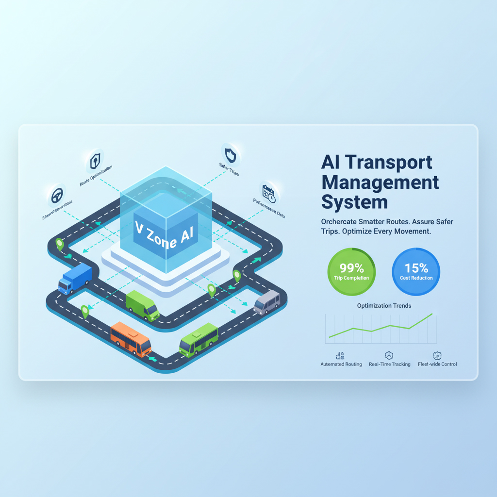 Whether you’re transporting people, goods, or equipment — managing daily fleet movement demands precision, reliability, and real-time intelligence. V Zone’s AI Transport Management System brings complete control over your fleet’s routing, stops, schedules, and trip performance — all powered by automation and actionable data.